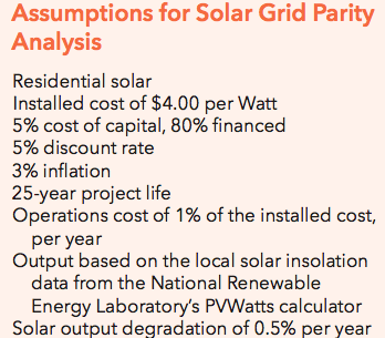 | Written by Wade | No Comments | Updated on Feb 7, 2013 The content that follows was originally published on the Institute for Local Self-Reliance website at http://ilsr.org/solar-costs-grid-prices-collision/assumptions-for-solar-grid-parity/