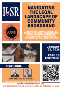 The webinar will cover a range of topics, including state laws that restrict or condition municipal broadband, governance and ownership models, partnerships with independent private Internet service providers, financing and funding compliance, regulatory and operational challenges, and litigation risks communities may face.