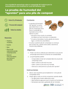 El Institute for Local Self-Reliance (ILSR) creó estas actividades de aprendizaje sobre compostaje en virtud de su Programa de capacitación sobre compostaje para la reconstrucción de suelos en vecindarios, para ayudar a los sitios de compostaje de la comunidad a capacitar a sus propios participantes comunitarios. Estas actividades de aprendizaje ofrecen un complemento práctico a nuestro Curso de certificación en línea de compostaje comunitario 101, que prepara a los participantes para establecer y gestionar proyectos de compostaje que involucren y sirvan a sus comunidades. ¡Estas actividades de aprendizaje están disponibles gratis! Tomate un momento para contarnos cómo usarás estos recursos, hacer comentarios o aportar ideas sobre recursos futuros.