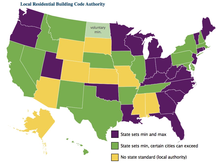 Some cities are more limited than others. While the federal constitution typically reserves all powers not expressly given the federal government to the states, states typically do not similarly reserve powers for cities. In fact, an opinion issued by Justice Dillon of the Iowa Supreme Court in the mid-1800s (Clark v. City of Des Moines) set a precedent for local authority that extends to this day in most states: many cities have only those powers expressly granted them by the state or that are indispensable in being a city. Issues like energy codes or property assessed clean energy programs don’t fit under “Dillon’s Rule.”