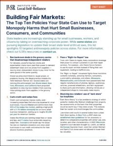 For more information on state policies that curtail corporate power and level the playing field for small, independent businesses, please contact the ILSR Independent Business team at