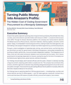 Drawing on purchasing records from 128 cities, counties, and school districts serving 51 million Americans, the report — Turning Public Money into Amazon’s Profits: The Hidden Cost of Ceding Government Procurement to a Monopoly Gatekeeper — exposes how Amazon has used its market power, political influence, and opaque pricing algorithms to insert itself into public purchasing systems with little transparency or oversight.