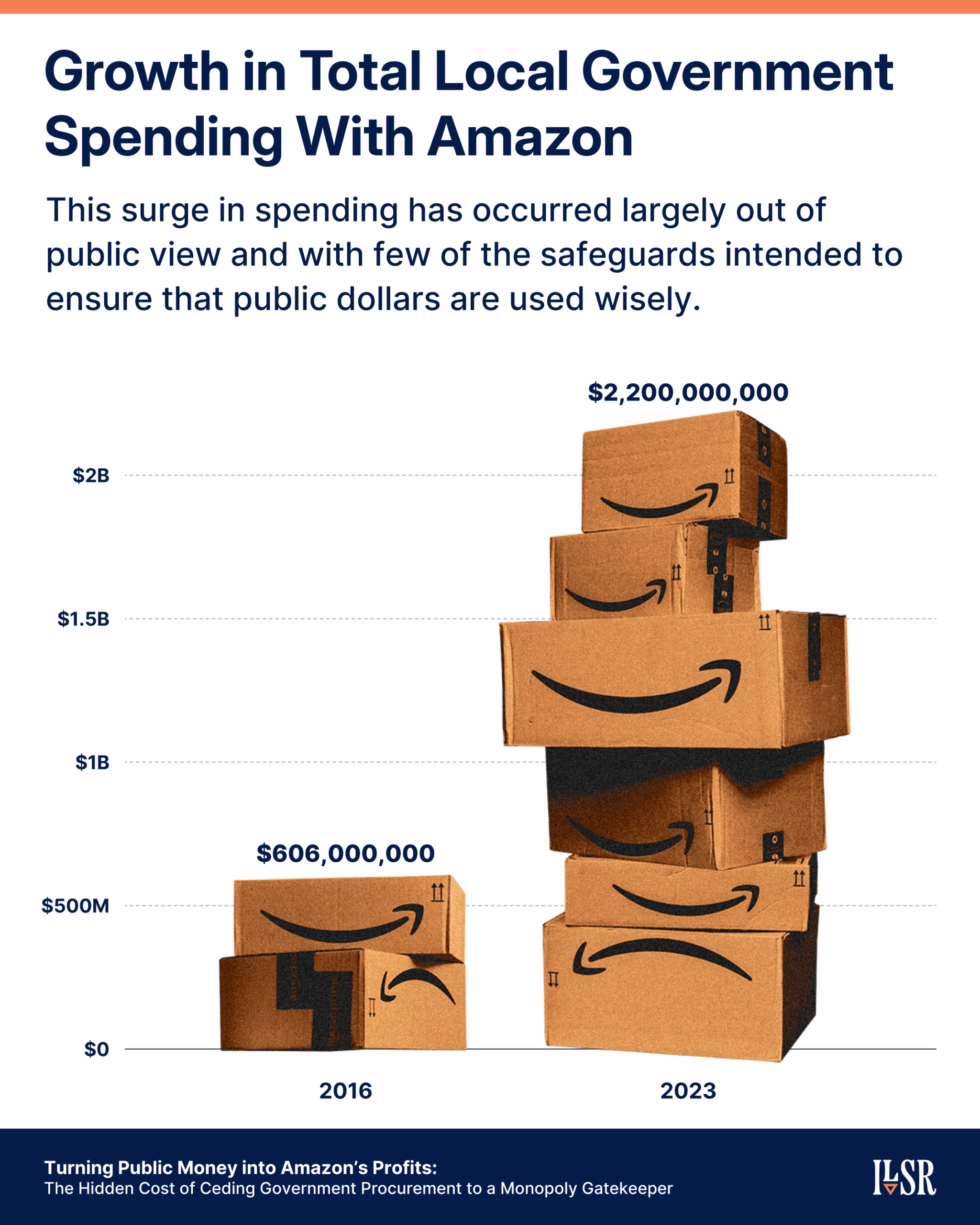 ILSR has conducted a sweeping investigation that reveals Amazon has quietly become a major force in how cities, counties, and school districts purchase basic supplies — and that its tightening grip is driving up costs, eroding competition, and harming local economies.