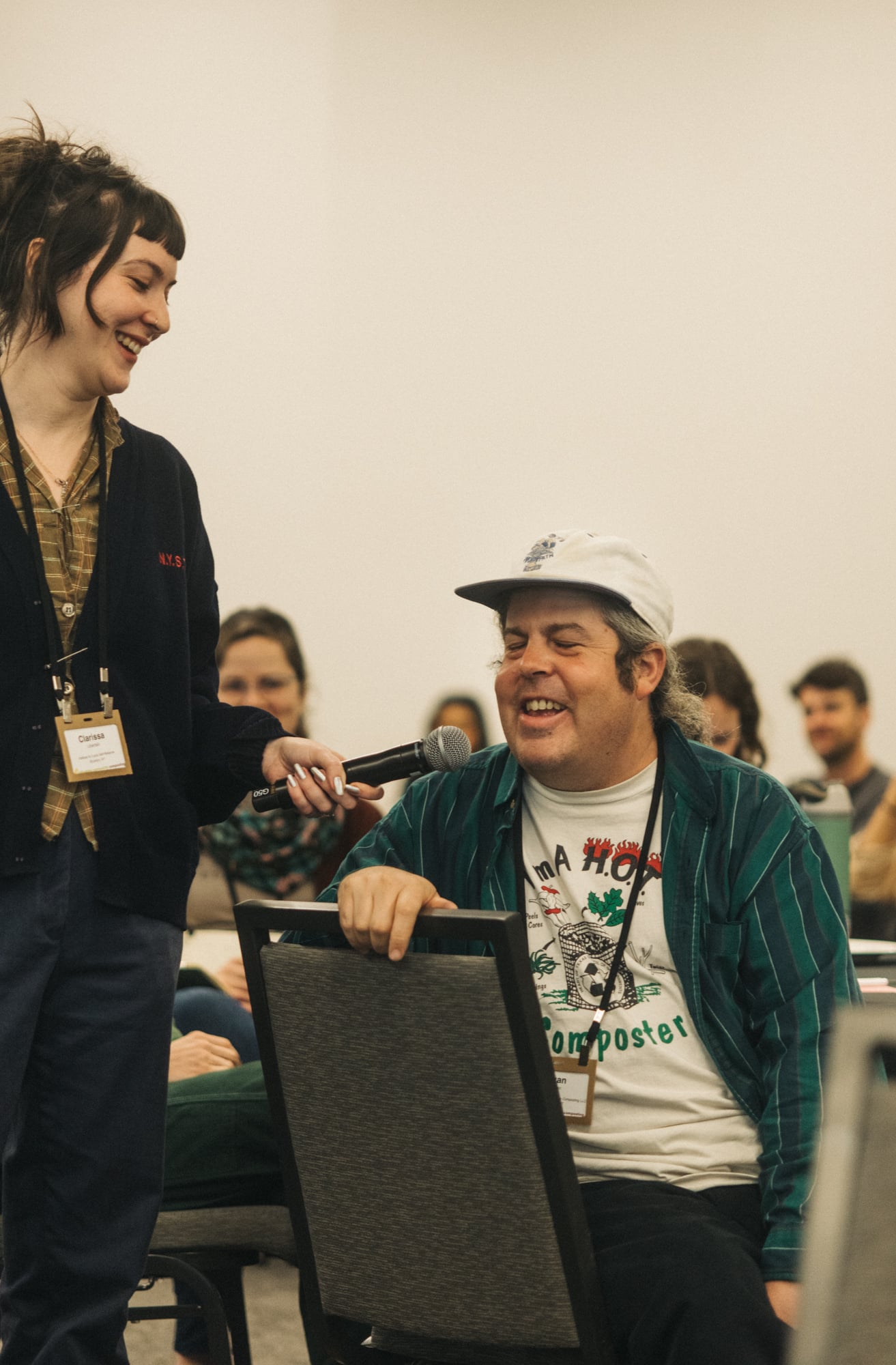 Los compostadores comunitarios saben que, a menudo, no hay mejor nexo entre corazones, personas e ideas que el arte. Organizada en colaboración con la Alianza de California para el Compostaje Comunitario, la galería Compost Art incluyó más de 75 obras de arte relacionadas con el compost, desde pinturas hasta esculturas interactivas y cartas Uno personalizadas. En la recepción de la CCC26, un micrófono abierto acogió una serie de actuaciones, entre las que se incluyeron canciones relacionadas con el compost, poesía e incluso malabarismos. Para un entretenimiento nocturno más humorístico, Alex Tatarsky's Dirt Trip: Un espectáculo de payasos sobre el compostaje Desafió la incomodidad de los espectadores ante el ’desperdicio“ e invitó a reírse de los estratos más bajos de la sociedad.