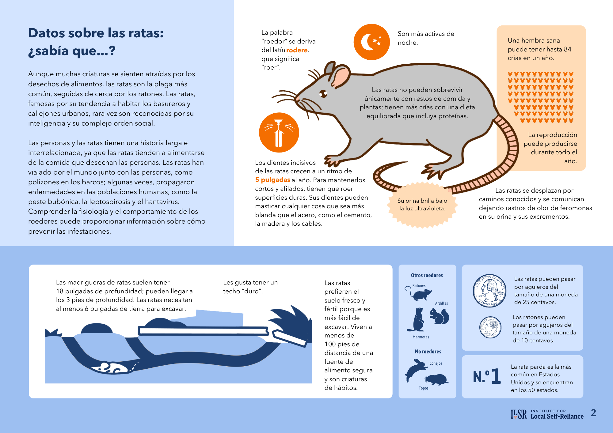 Fuente: Sophia Hosain, Clarissa Libertelli y Brenda Platt (2022); ¡Ay, ratas! Cómo evitar la presencia de roedores en los sitios de compostaje comunitario; Instituto para la Autosuficiencia Local, (ilsr.org/composting-ohrats). Reimpreso con permiso.