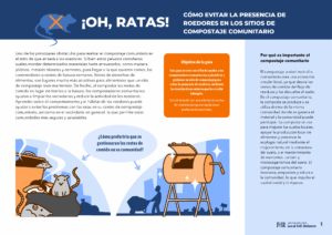 ¡Oh, ratas! Cómo evitar la presencia de roedores en los sitios de compostaje comunitario Se creó con el fin de ayudar a los compostadores de los jardines comunitarios, las escuelas, las granjas urbanas y otros lugares comunitarios a gestionar con eficacia su proceso de compostaje para evitar la presencia de roedores. Gran parte de la información incluida en la guía se aplica independientemente del sistema de compostaje utilizado.