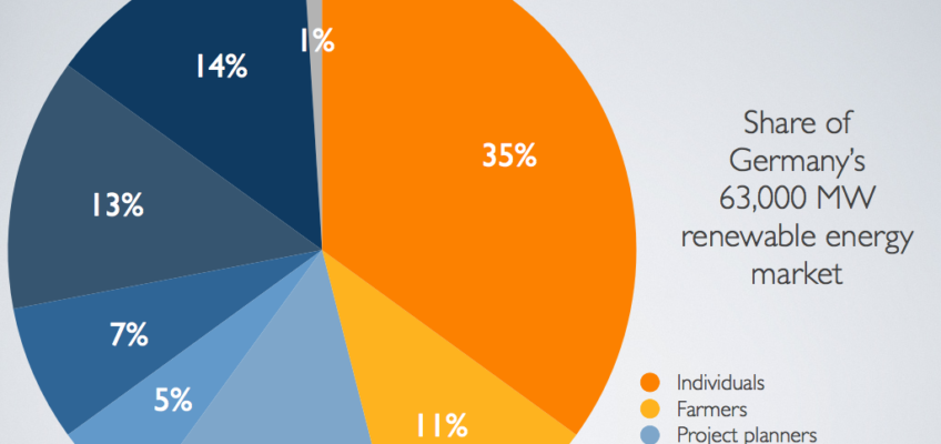 Courtesy of Craig Morris and the Germany Renewable Energy industry, evidence that Germany’s renewable energy program remains people powered. Total megawatts represent wind and solar only.